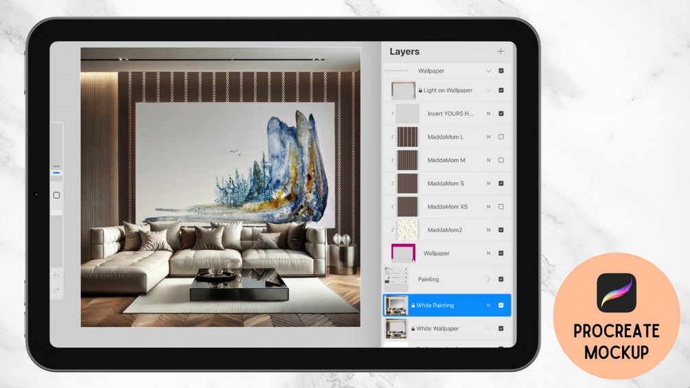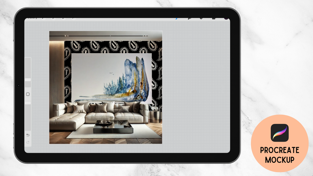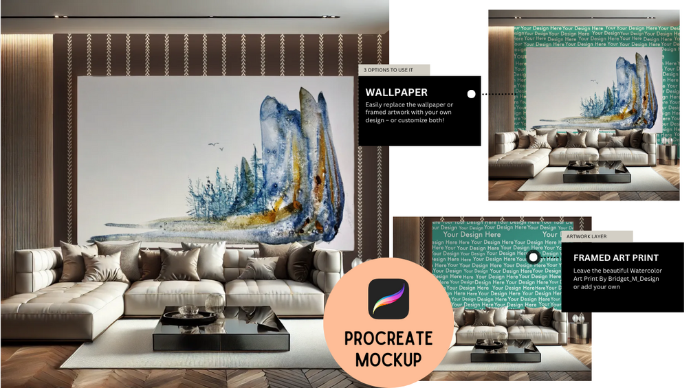 Procreate Mockup – Elegant Living Room Scene for Wallpaper & Art Prints + Business Guide | MaddaMom 250201
