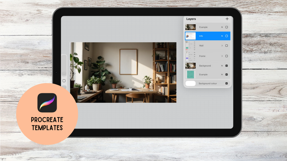 Procreate Mockup – Cozy Studio Scene(Wallpaper + Frame Display) | Zoom Background Soft daylight