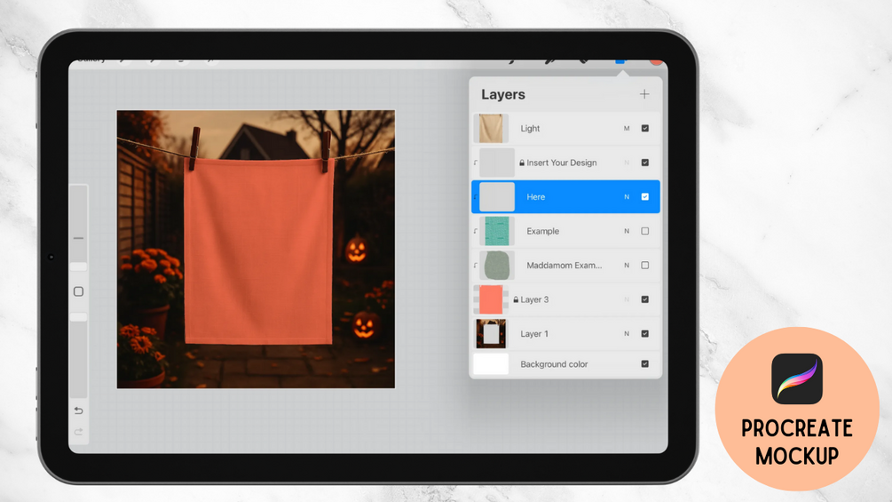 🎃Tea Towel Procreate Mockup – Halloween Edition (Outdoor Scene)